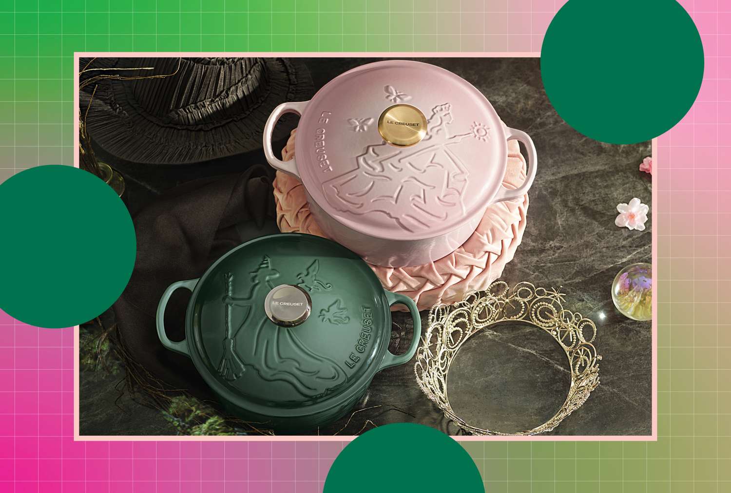 I watched the 2024 Wicked movie shortly after it began streaming. The timing was perfect—I was days into my first run-in with Coronavirus and was the sickest I had been in years. My body was weak, and I, quite honestly, was depressed and desperate to relieve COVID symptoms. A nearly three-hour movie filled with whimsy was exactly what I needed to bring some life back to my soul. Strong characters, like Glinda and Elphaba, and thoughtfully built worlds tend to evoke that in people. And honestly, Le Creuset Dutch ovens do just the same for many (me included). It makes sense why we’d want to continue that in our homes through memorabilia, especially when it combines those two worlds—Wicked and Le Creuset—completely.