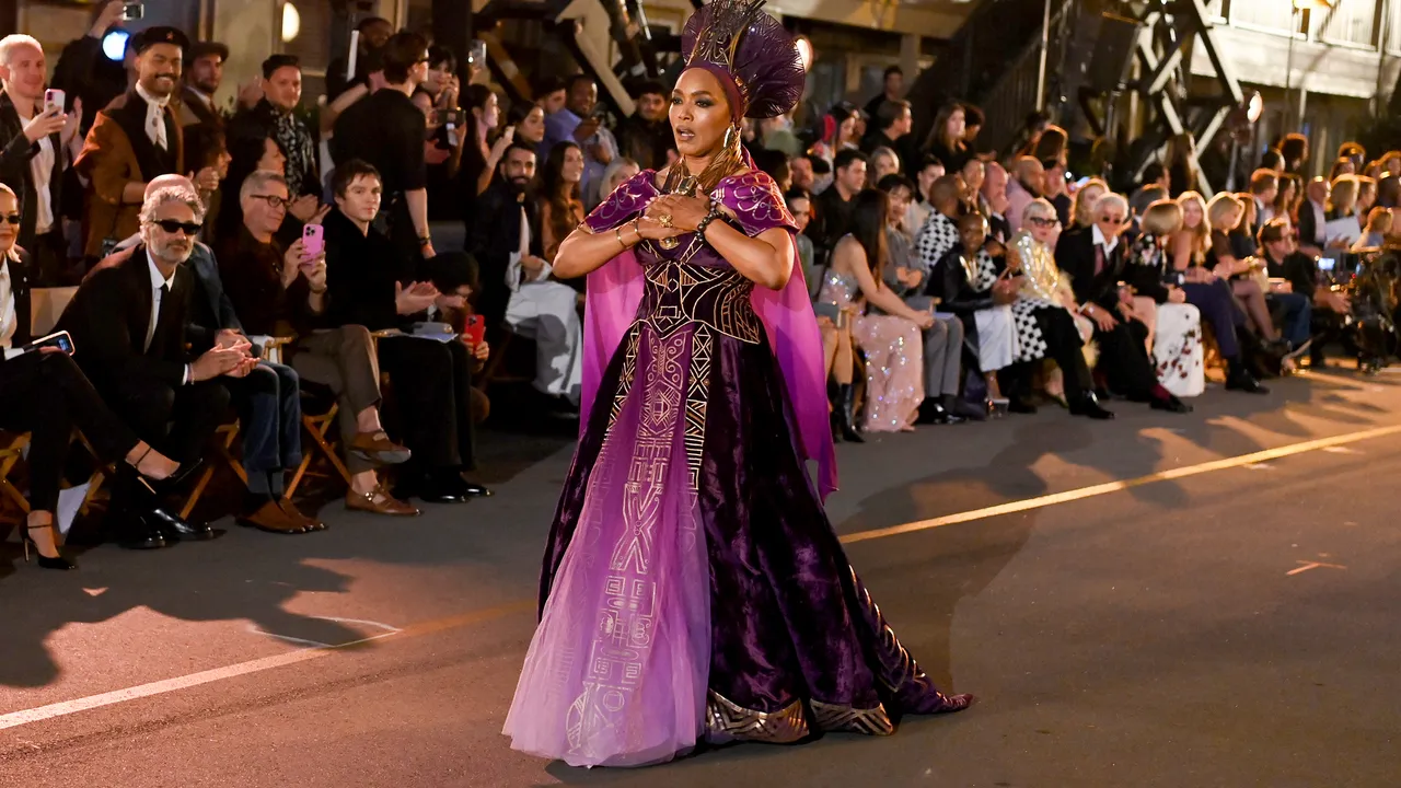 A surprise musical number opening by Nicole Kidman as Gilda singing “Put the Blame on Mame” turned magical when the actress emerged onto the Paramount studios, walking down the street wearing custom Chanel and Chanel Fine Jewelry. Baz Luhrmann appeared, directing Kidman and then, the crowd gathered at large, asking for more energy from those on the front row; including a cheeky “will the featured actor playing Anna Wintour please give me more?” Then, he yelled “Action KJ!,” at which moment Kendall Jenner walked on the runway wearing an original costume from Moulin Rouge! Designed by Catherine Martin, and opulent earrings from Tiffany & Co to the sound of Chris Isaak’s “Baby Did a Bad Bad Thing.” This is why we come to Vogue World: Hollywood!